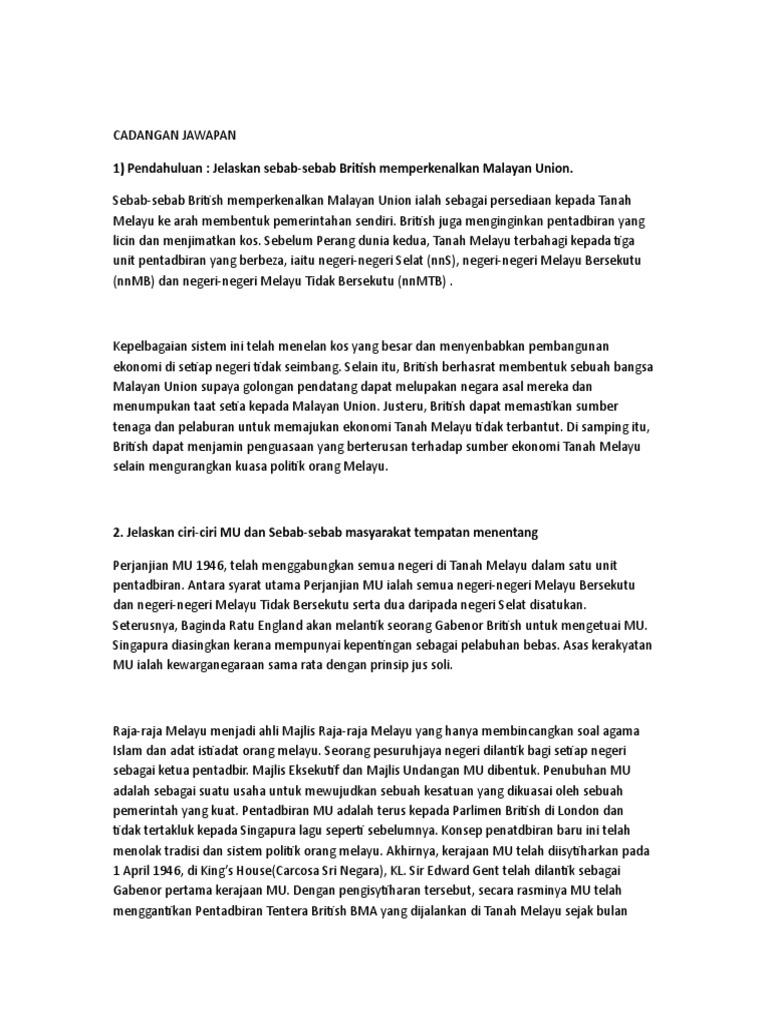 Contoh Soalan Kertas 3 Sejarah Malayan Union - Resepi Book R via resepibookr.blogspot.com